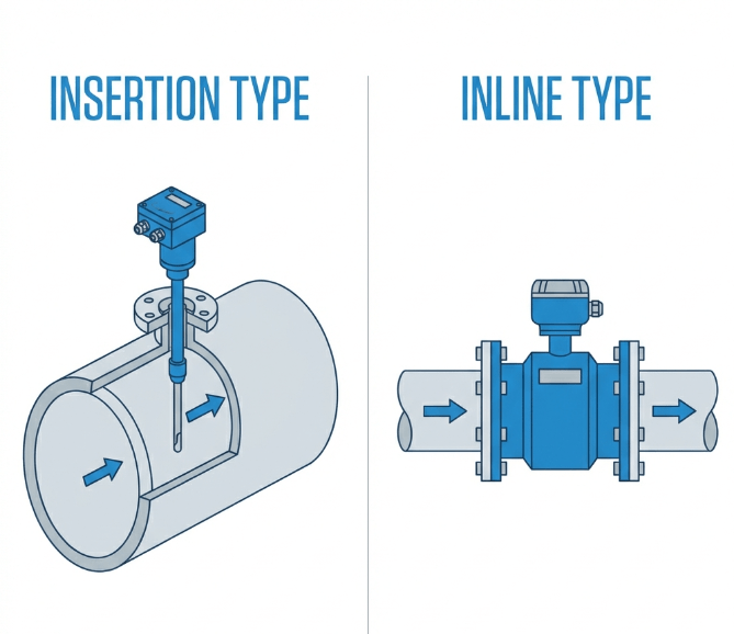 Break-even point: For most applications, insertion meters become more cost-effective at DN200 (8") and above.